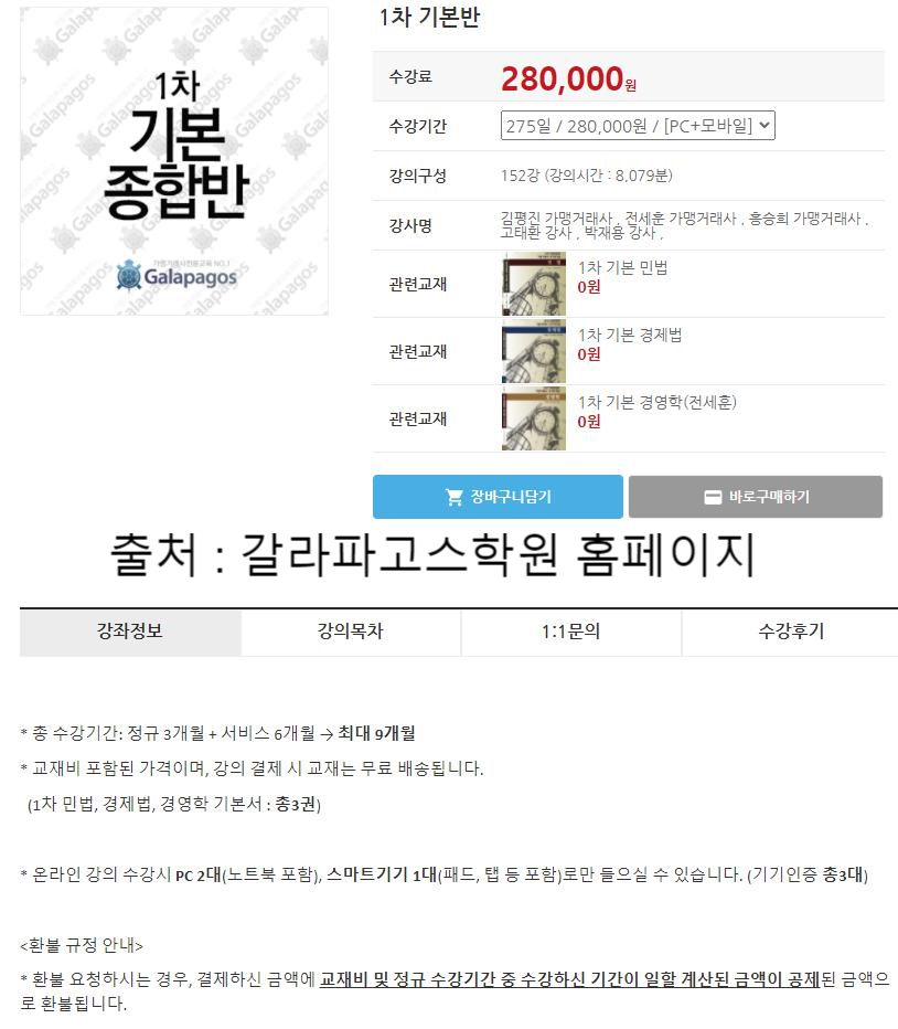 1차 종합반 가격 - 갈라파고스 가맹거래사 학원비