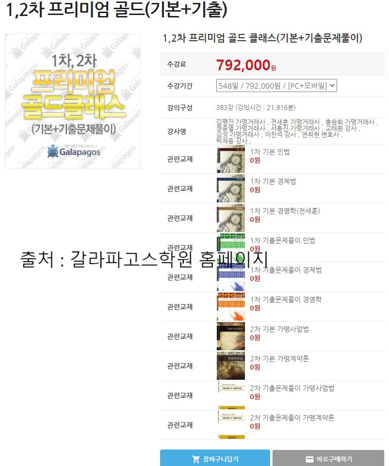 갈라파고스 가맹거래사 학원비, 1차 2차 프리미엄 종합반