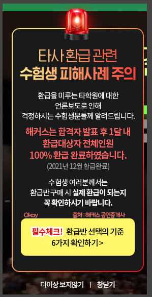 수험생 여러분께서는 환급반 구매 시 실제 환급이 되는지 꼭 확인하시기 바랍니다.