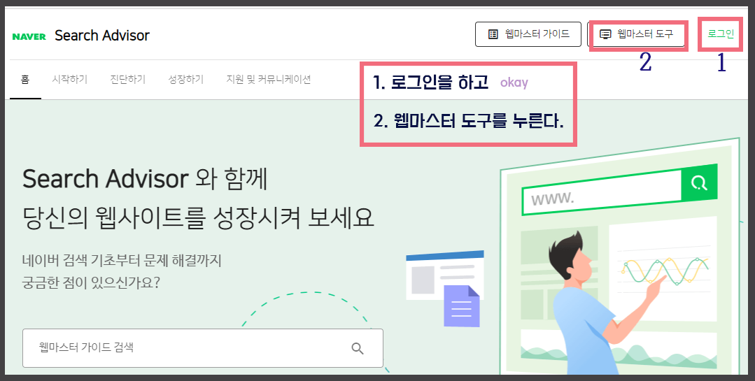 2. 로그인 → 웹마스터 도구