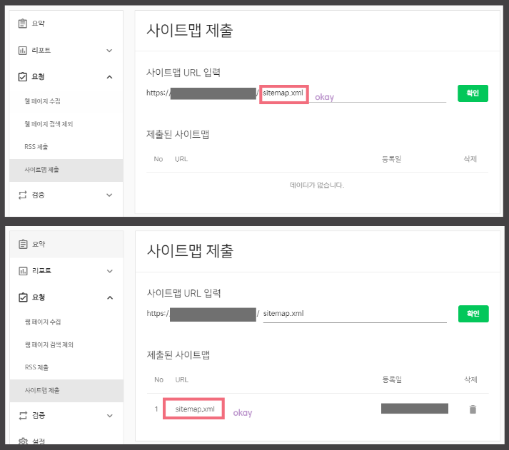 이게 끝이에요. 너무 쉽죠? 이제는 마지막 단계인 사이트맵 제출을 해볼게요.
