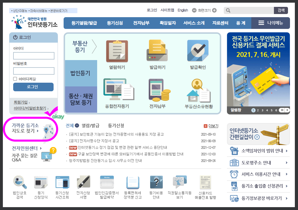 가까운 등기소를 찾는 방법은?