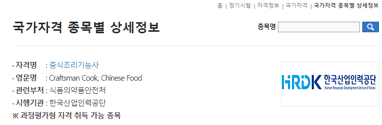 중식조리기능사 - 국가자격 종목별 상세정보 | Q-net