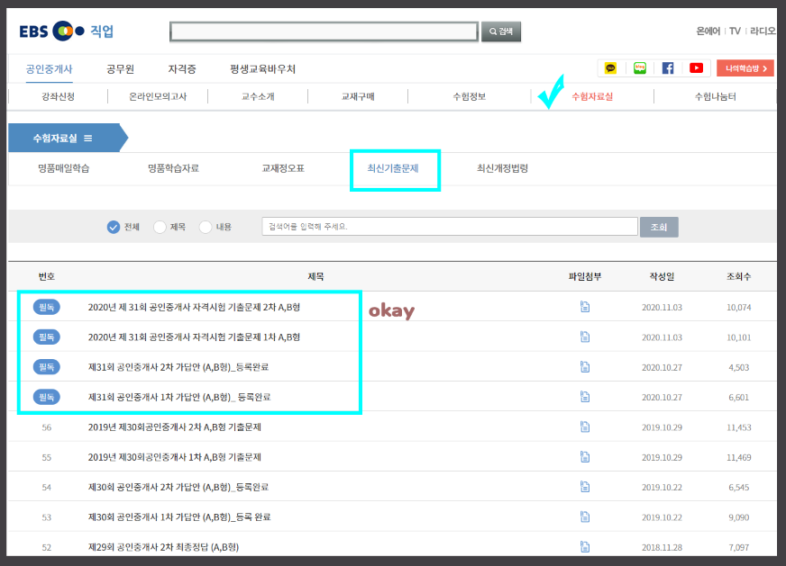 오늘은 ebs 공인중개사 홈페이지에서 기출문제 다운받는 방법을 알려드리겠습니다. 간단하고 쉬워요! 특히 비회원인 경우에도 가능하고, 로그인 전혀 필요없이 쉽게 다운받을 수 있게 되어있습니다.