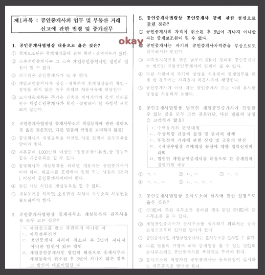 공인중개사 시험을 성공적으로 치르기 위해서는 기출문제를 반복해서 푸는 연습이 필요합니다. 이건 비단 공인중개사 시험만 그런 게 아니고 모든 자격증 시험은 기출문제를 익히는 것이 기본